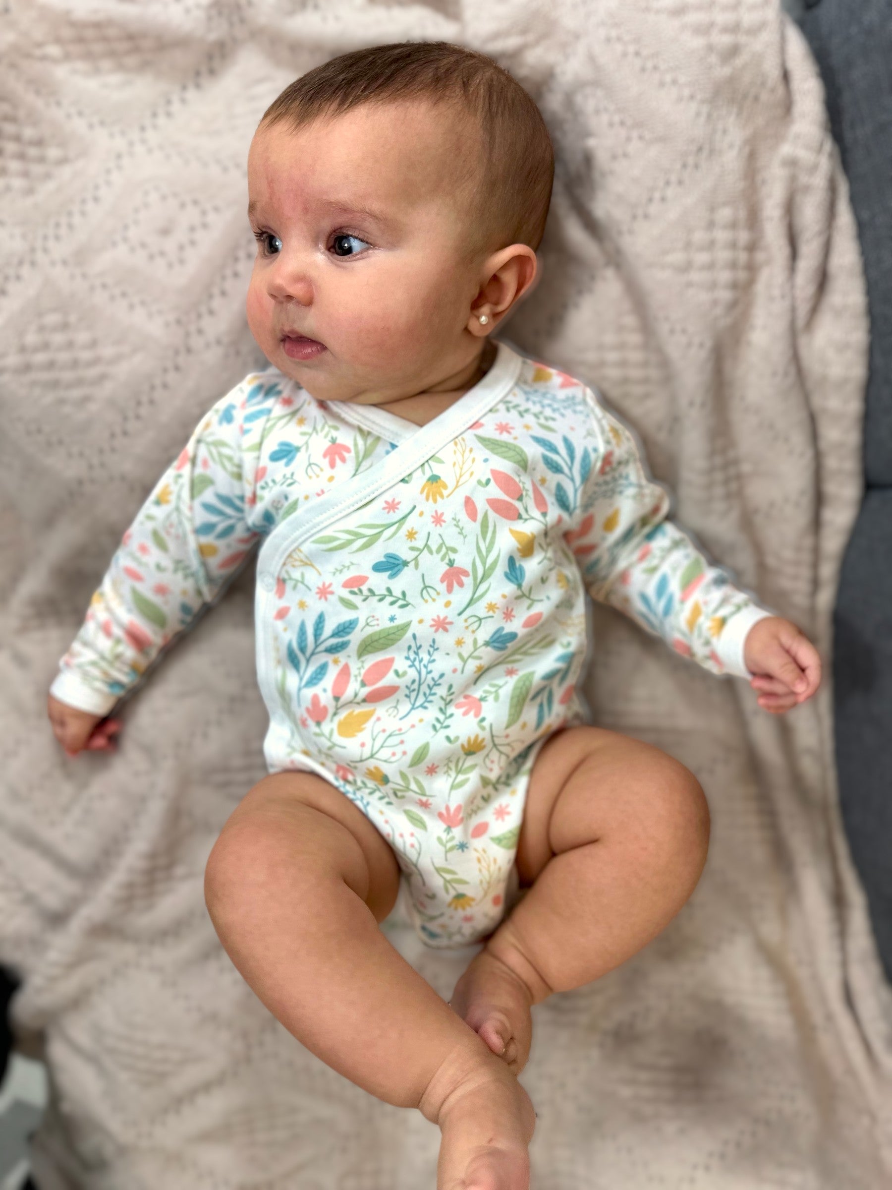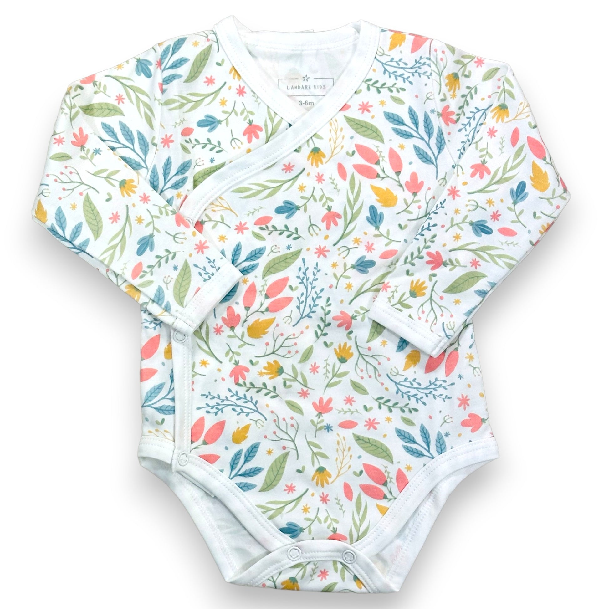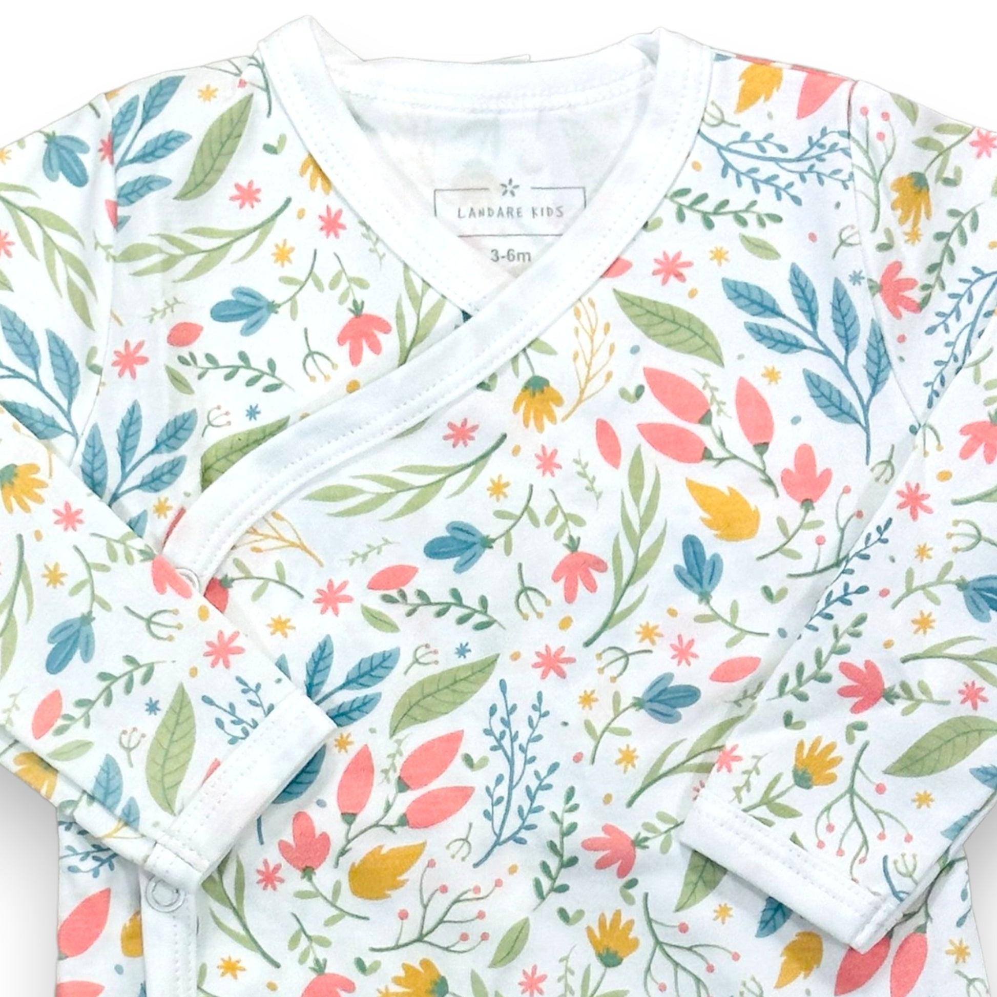 Body cruzado hecho 100% en algodón pima peruano premium estampado con nuestro diseño floreado. Muy suave y cómodo, ideal para guaguas hasta 9 meses.
