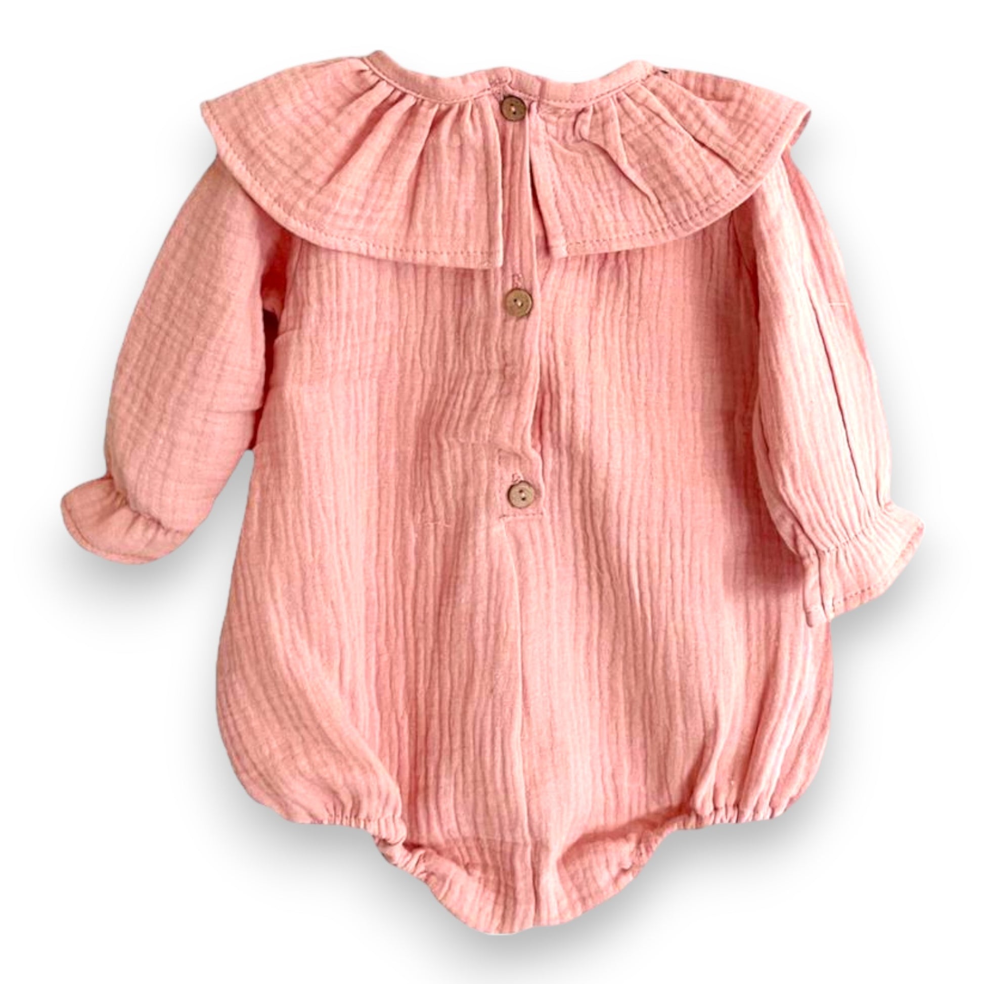 Body manga larga color rosa con vuelo. Ideal para usarlo como blusa combinado con nuestros cubrepañales o como ranita.