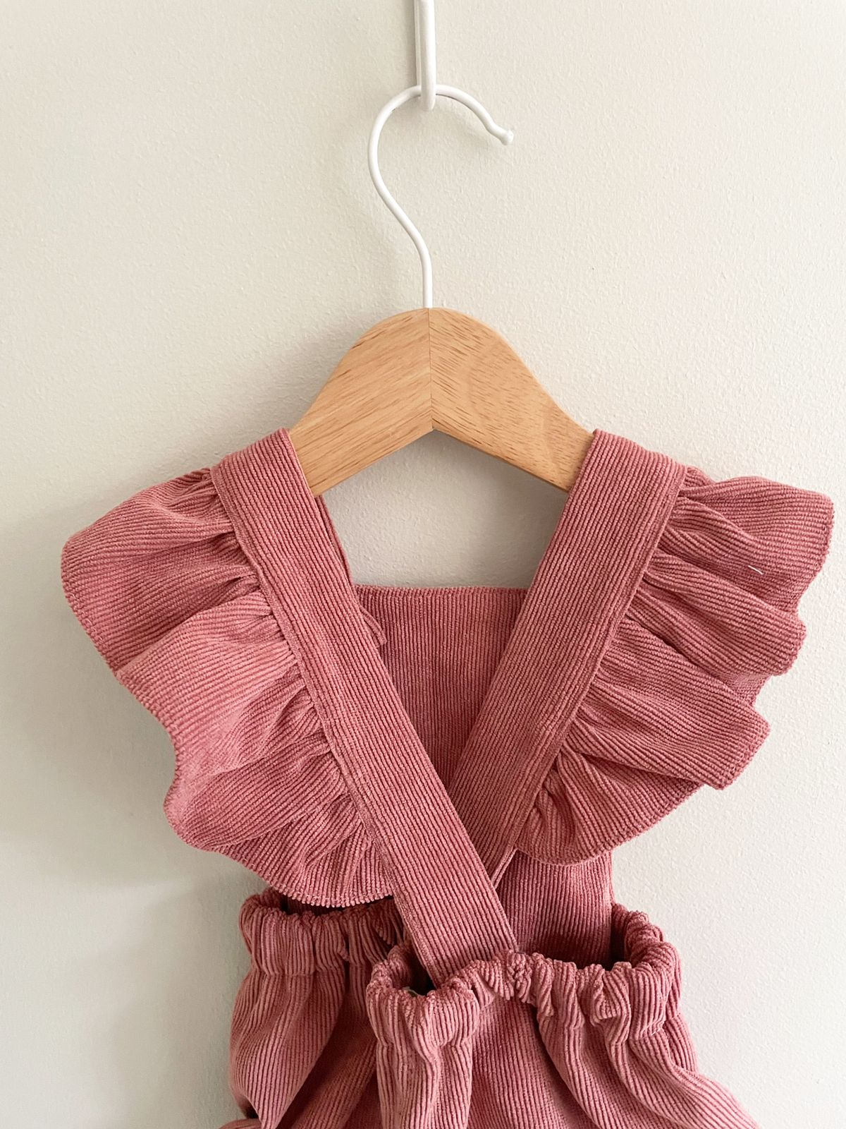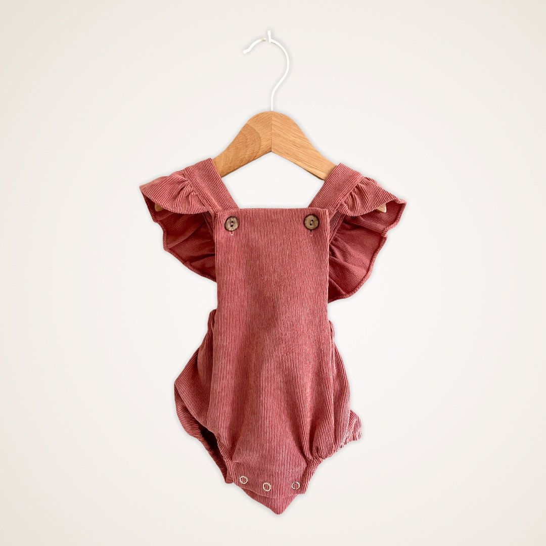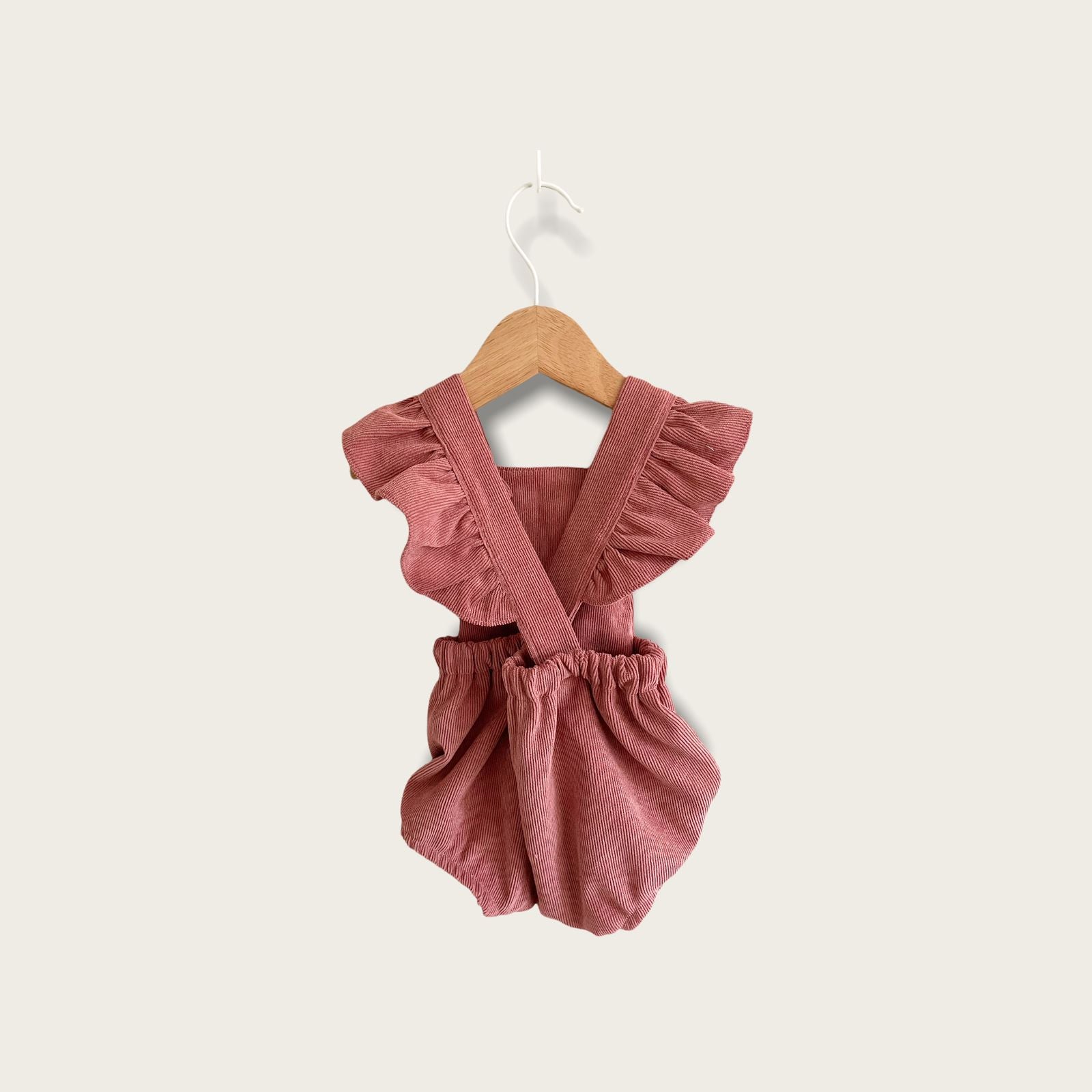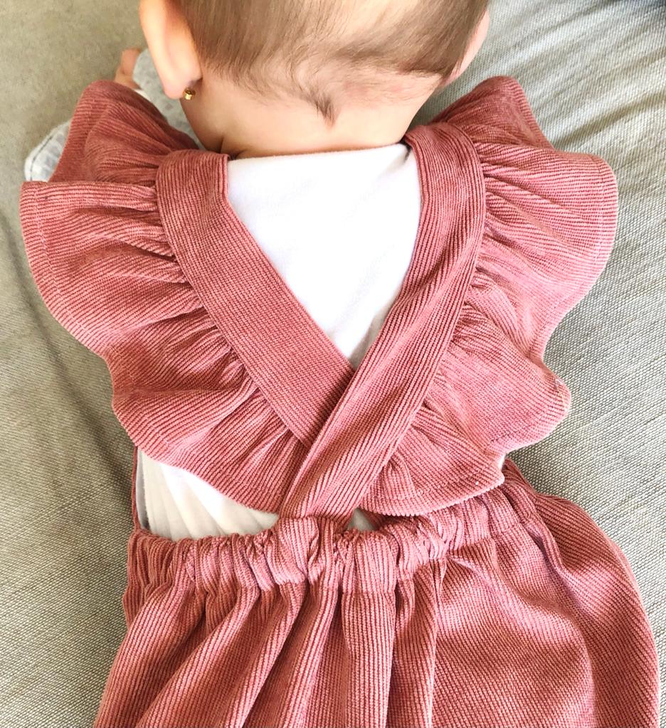 Jardinera Magnolia palo rosa. Hecha de cotelé con vuelos en la espalda