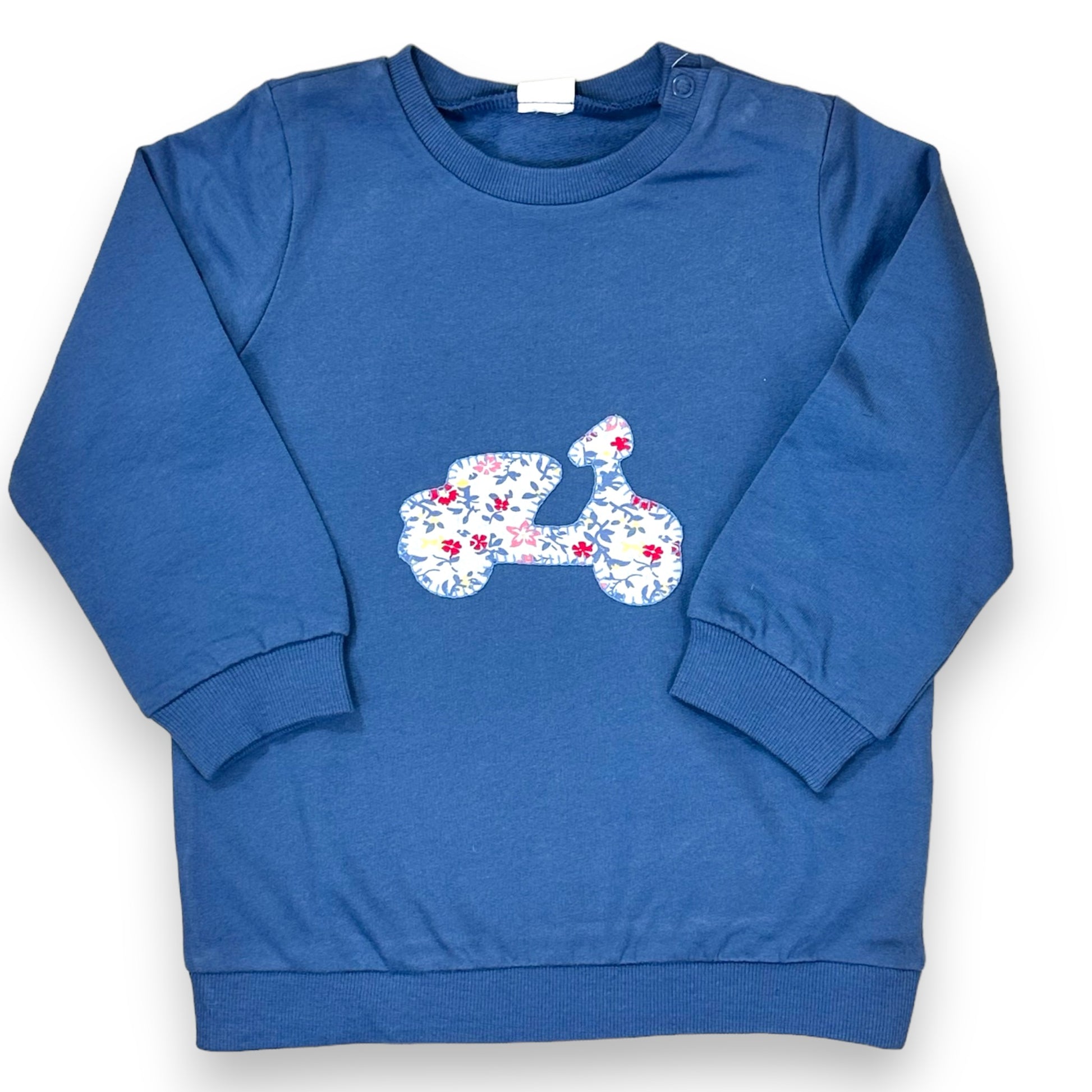 Polerón con recorte vespa en estampado Mediterráneo bordado a mano.