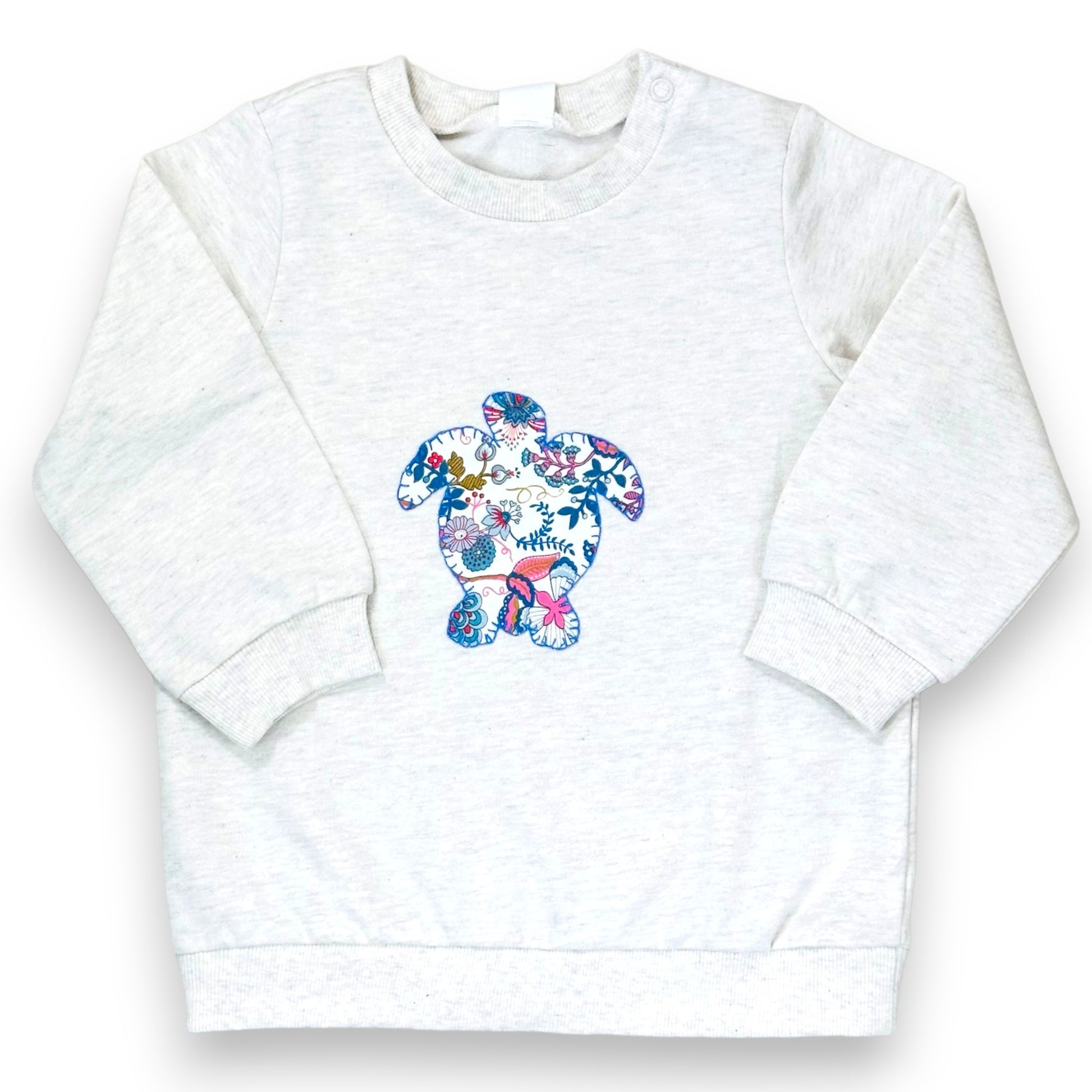 Polerón con recorte Tortuga en estampado Mabelle bordado a mano.