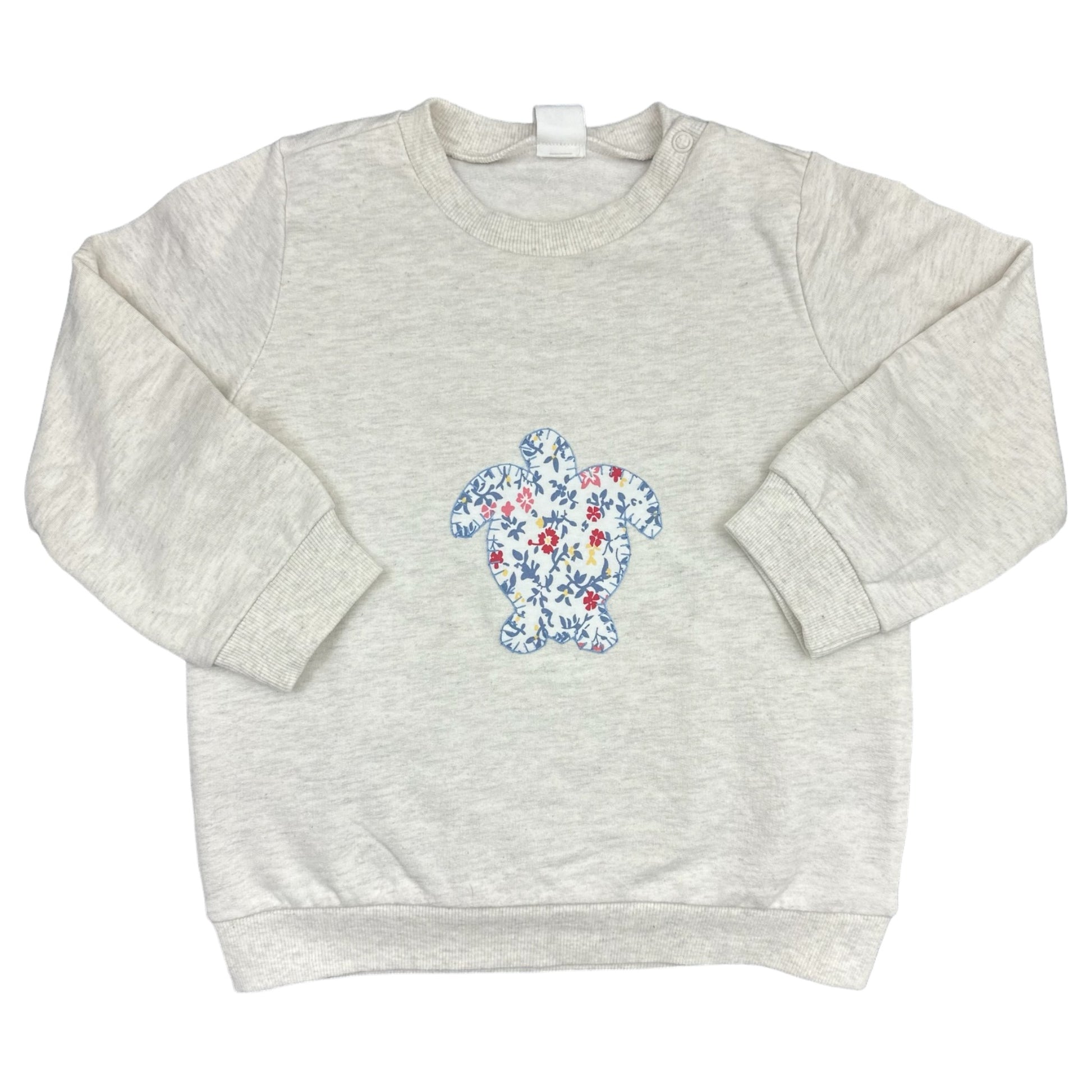 Polerón con recorte Tortuga en estampado Mediterráneo bordado a mano.