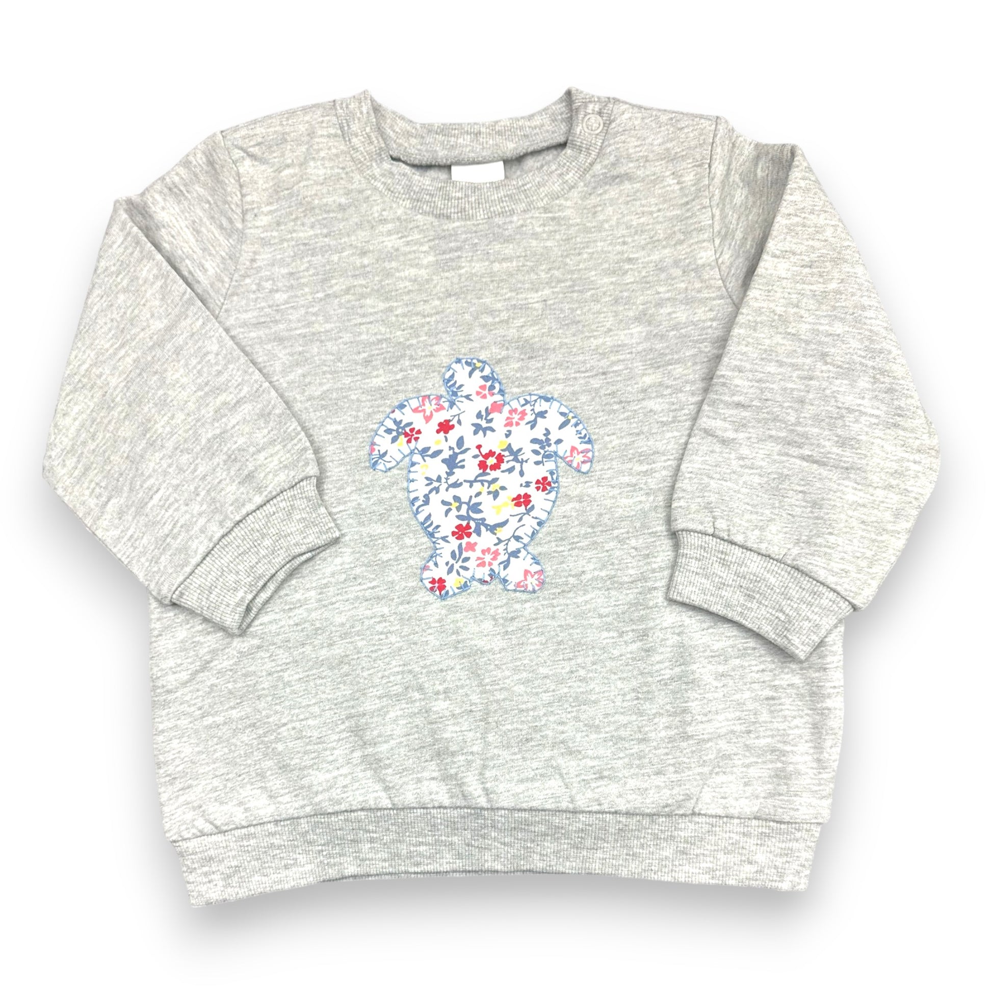 Polerón con recorte Tortuga en estampado Mediterráneo bordado a mano.