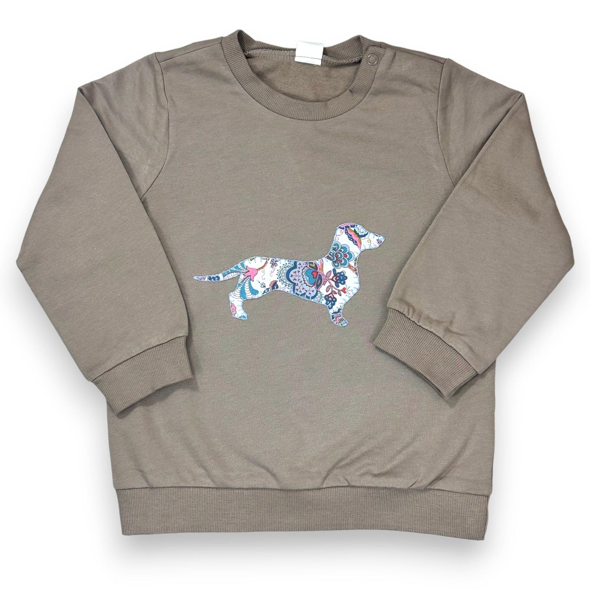 Polerón con recorte Teckel en estampado Mabelle bordado a mano.